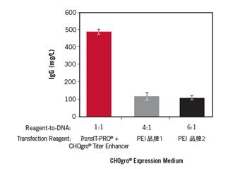 圖5. TransIT -PRO?轉(zhuǎn)染試劑搭配CHOgro? Titer Enhancer,相較于PEI轉(zhuǎn)染體系,CHO細(xì)胞IgG的表達(dá)量可提高約3倍