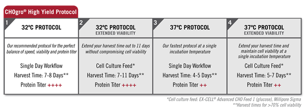 圖6. CHOgro? High Yield Expression System的多種細(xì)胞培養(yǎng)方案