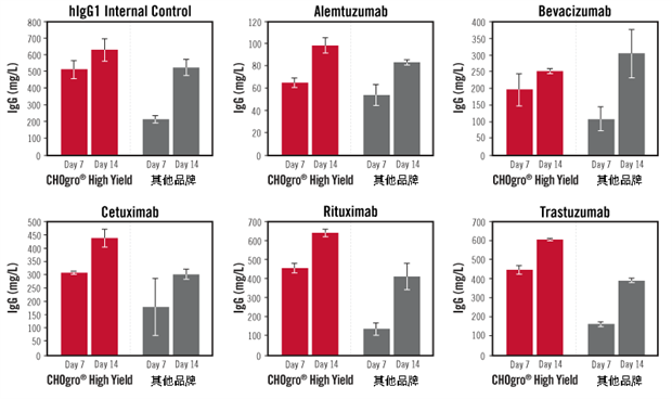 Mirus CHOgro? High Yield Expression System針對不同類型蛋白/抗體的表達(dá),有著更高產(chǎn)量
