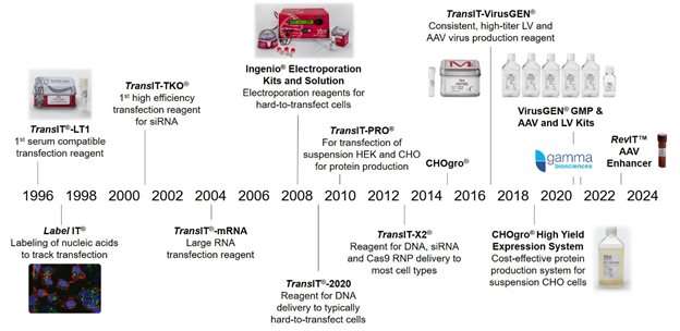 ? ? ? ?美國Mirus公司成立于1995年,是世界上很早開發(fā)高效、低毒轉(zhuǎn)染試劑的公司,同時也是該類試劑的主要供應(yīng)商之一。其產(chǎn)品線涵蓋化學(xué)轉(zhuǎn)染試劑、電轉(zhuǎn)染產(chǎn)品、病毒生產(chǎn)和轉(zhuǎn)導(dǎo)產(chǎn)品,適用于基因功能研究、蛋白生產(chǎn)、病毒載體生產(chǎn)和動物模型構(gòu)建等領(lǐng)域。Mirus被公認(rèn)為轉(zhuǎn)染試劑開發(fā)的領(lǐng)跑者,其許多杰出成果獲得世界公認(rèn)與廣大用戶的好評。