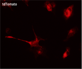 tdTomato是由兩個(gè)mCherry單體串聯(lián)表達(dá)的二聚體,這種設(shè)計(jì)是為了降低蛋白質(zhì)聚集,提高熒光強(qiáng)度,并且減少對細(xì)胞或?qū)嶒?yàn)動(dòng)物的毒性。因此,tdTomato在活體實(shí)驗(yàn)中更為常用,它提供了一種更為穩(wěn)定和強(qiáng)烈的紅色熒光標(biāo)記。