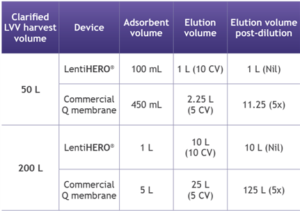 篩選裝置上樣量20ml,測得填料載量為3E+8 IU/ml。