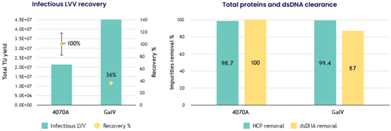 - LentiHERO®具備強大的雜質去除能力,在不影響載體功能的情況下可去除>98%的HCP及>87%的dsDNA殘留