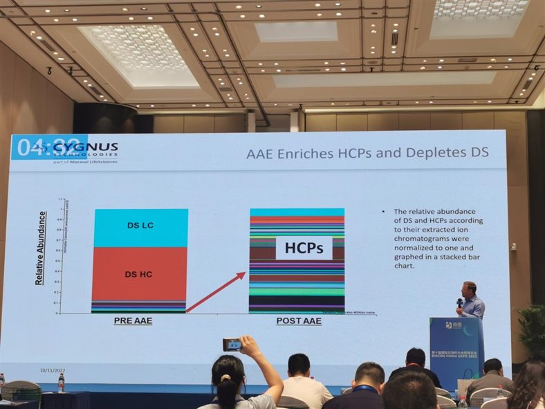 At the venue for "Antibody Protein Product Process Development and BLA", Eric Bishop, Vice President of R&D at Cygnus, delivered an excellent speech titled "Advanced Orthogonal Methods for Qualification and Bridging of Host Cell Protein ELISAs" to customers. He introduced and shared the latest methods for coverage analysis and representative cases, which received unanimous praise from the audience.