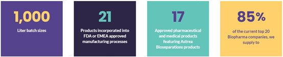 The two core patented technologies (products) of Astrea Bioseparations—Mimetic ligand® and PuraBead®—serve as the cornerstone of the company’s product portfolio. To date, 21 marketed products (approved by the FDA/EMA) have utilized Astrea Bioseparations’ products for commercial manufacturing, including those from multinational corporations and emerging biotechnology companies.